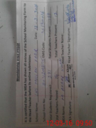 | EMIS Code: 36130016 | Name of School: GHS MULLAN FAQIR BUDHLA MULTAN | |||