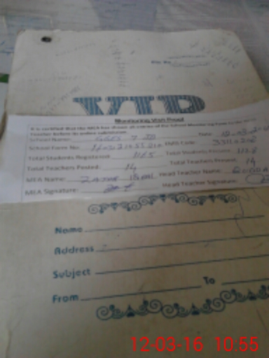| Name: SA**** NA**** Designation: (School Headmaster's/Headmistress's) HEADMISTRESS Phone/Cell Number: 03**** |