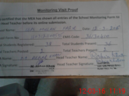 | EMIS Code: 36130410 | Name of School: GGPS MULAN FAQIR MULTAN | |||