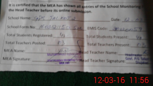 | EMIS Code: 36120059 | Name of School: GPS TALKOT 2 KHAN GARAH ROAD SHUJABAD | |||