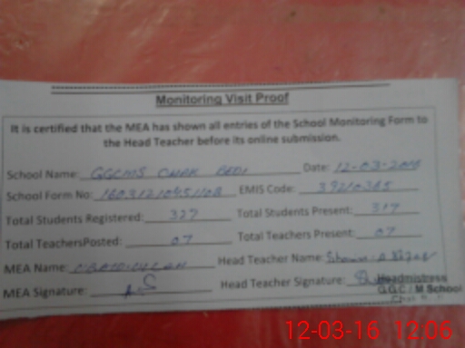 | EMIS Code: 39210365 | Name of School: GGCMS CHAK BEDI | |||