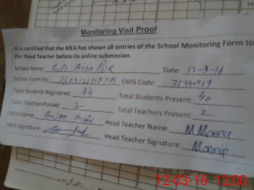 | Attendance Register | Head Teacher | MEA with School | Visit Proof |