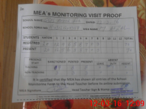 | Certified that this School was Inspected by the Undersigned MEA/DMO Today and the Information Stated Above is as Per Record. | |||||