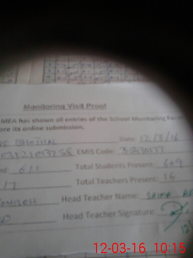 | Certified that this School was Inspected by the Undersigned MEA/DMO Today and the Information Stated Above is as Per Record. | |||||