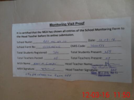 | Certified that this School was Inspected by the Undersigned MEA/DMO Today and the Information Stated Above is as Per Record. | |||||