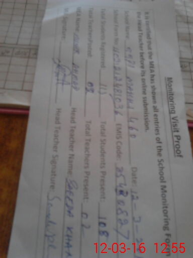 | Attendance Register | Head Teacher | MEA with School | Visit Proof |