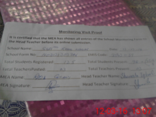 | Certified that this School was Inspected by the Undersigned MEA/DMO Today and the Information Stated Above is as Per Record. | |||||