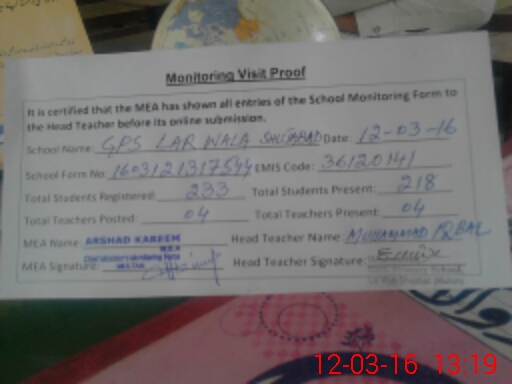 | EMIS Code: 36120141 | Name of School: GPS LAR WALA SHUJA ABAD | |||