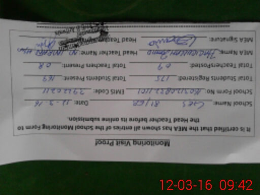 | Attendance Register | Head Teacher | MEA with School | Visit Proof |