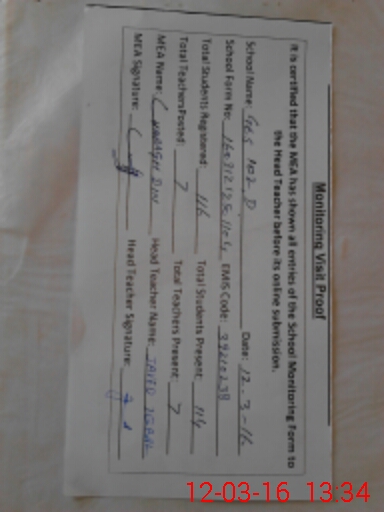 | Certified that this School was Inspected by the Undersigned MEA/DMO Today and the Information Stated Above is as Per Record. | |||||