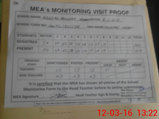 | Attendance Register | Head Teacher | MEA with School | Visit Proof |