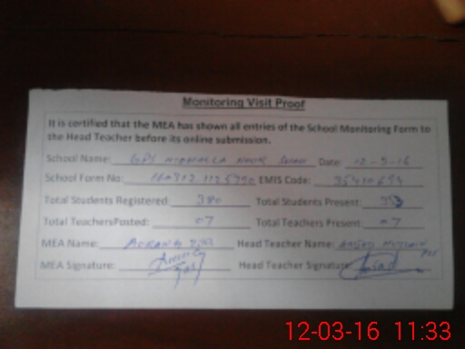 | Certified that this School was Inspected by the Undersigned MEA/DMO Today and the Information Stated Above is as Per Record. | |||||