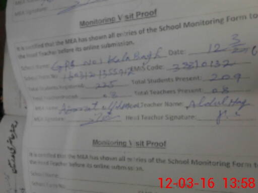 | EMIS Code: 38310132 | Name of School: GPS NO. 1 KALA BAGH | |||