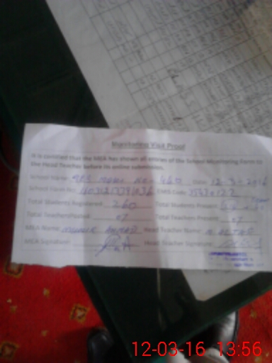 | Attendance Register | Head Teacher | MEA with School | Visit Proof |