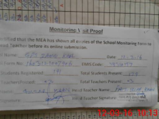 | EMIS Code: 38310157 | Name of School: GPS ZANGHI KHEL | |||