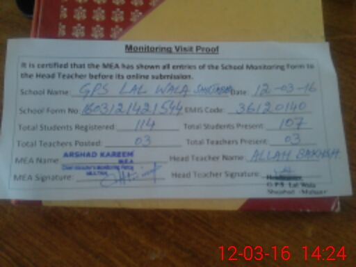 | EMIS Code: 36120140 | Name of School: GPS LAL WALA SHUJAHABAD | |||