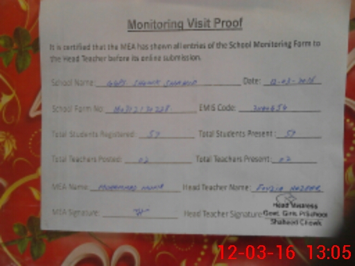 | EMIS Code: 31140454 | Name of School: GGPS CHOWK SHAHEED | |||