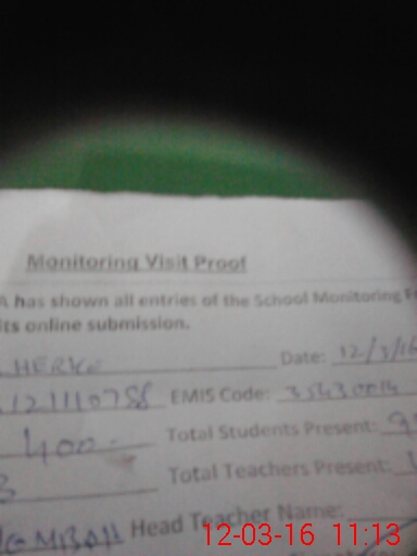 | Attendance Register | Head Teacher | MEA with School | Visit Proof |