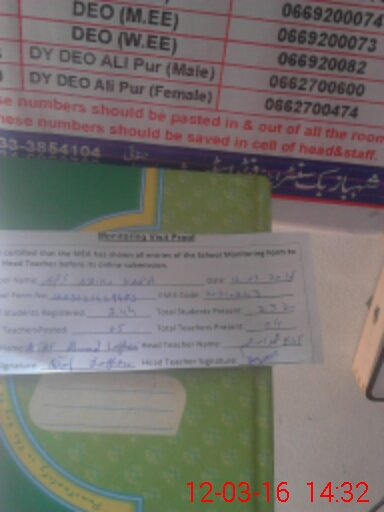 | Certified that this School was Inspected by the Undersigned MEA/DMO Today and the Information Stated Above is as Per Record. | |||||