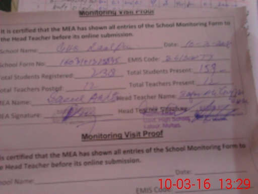 | Certified that this School was Inspected by the Undersigned MEA/DMO Today and the Information Stated Above is as Per Record. | |||||
