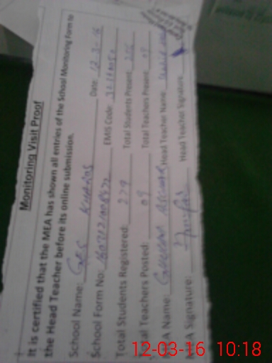 | Certified that this School was Inspected by the Undersigned MEA/DMO Today and the Information Stated Above is as Per Record. | |||||
