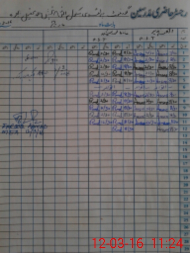 | CNIC | Full Name | Designation | R/C | Absence During Last Calender Month |