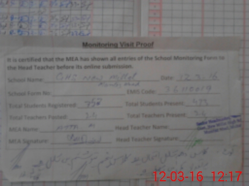 | EMIS Code: 36110019 | Name of School: GHS NEW MILLAT MUMTAZABAD MULTAN | |||