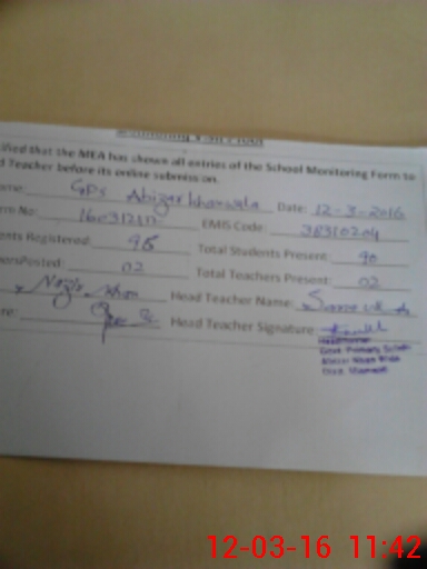 | EMIS Code: 38310204 | Name of School: GPS ABBIZAR KHAN WALA | |||
