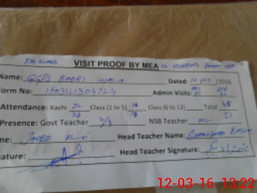 | EMIS Code: 32410294 | Name of School: GGPS BADRI WALA | |||