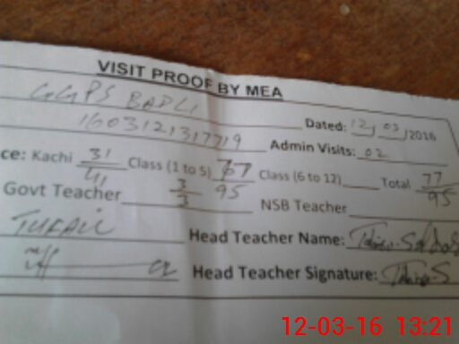 | Attendance Register | Head Teacher | MEA with School | Visit Proof |