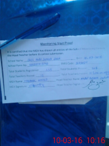 | Attendance Register | Head Teacher | MEA with School | Visit Proof |