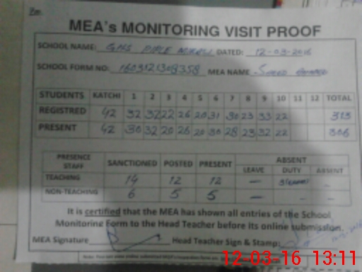 | Certified that this School was Inspected by the Undersigned MEA/DMO Today and the Information Stated Above is as Per Record. | |||||