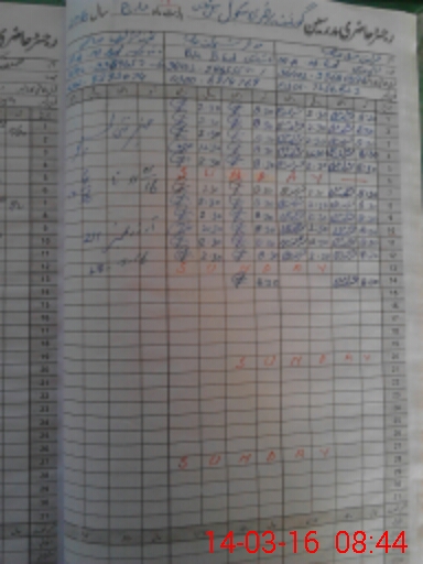 | CNIC | Full Name | Designation | R/C | Absence During Last Calender Month |