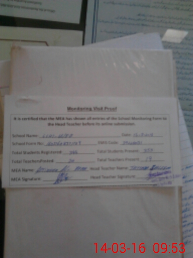 | Attendance Register | Head Teacher | MEA with School | Visit Proof |