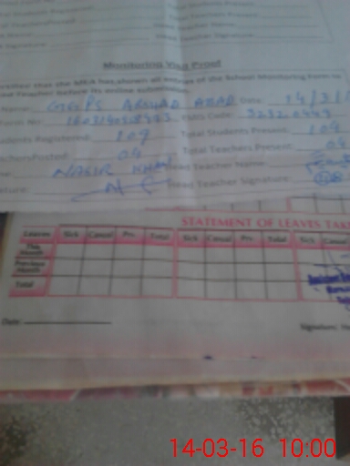 | Monitoring Date: 14-03-2016 | Start Time: 14-03-2016 09:29 AM | End Time: 14-03-2016 10:01 AM | Name of MEA: Na**** Kh**** | |