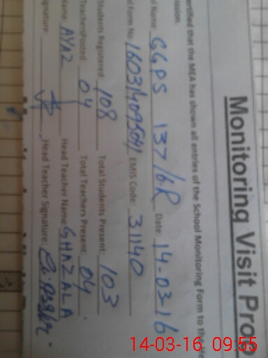 | EMIS Code: 31140415 | Name of School: GGPS CHAK NO. 137/6-R | |||