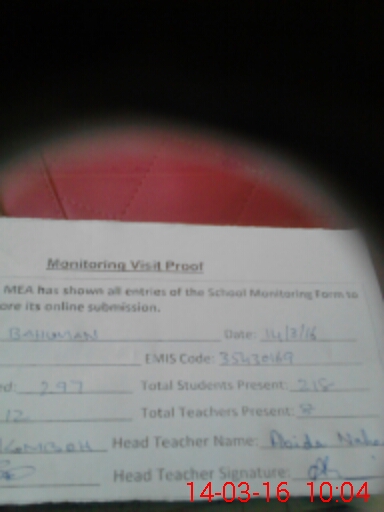 | Certified that this School was Inspected by the Undersigned MEA/DMO Today and the Information Stated Above is as Per Record. | |||||