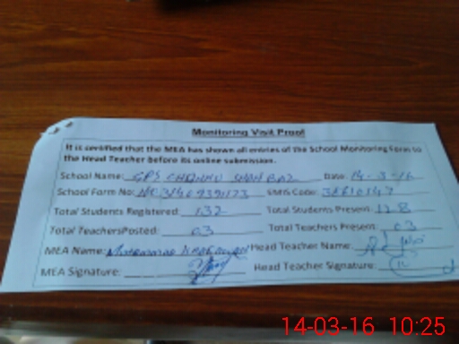 | Attendance Register | Head Teacher | MEA with School | Visit Proof |