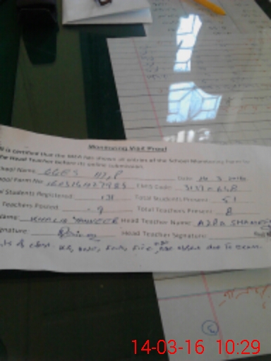 | Remarks (Use Separate Page if Required): STUDENTS OF CLASSES KG ONE FOUR FIVE AND EIGHT ARE NOT PRESENT DUE TO EXAMS | |||||