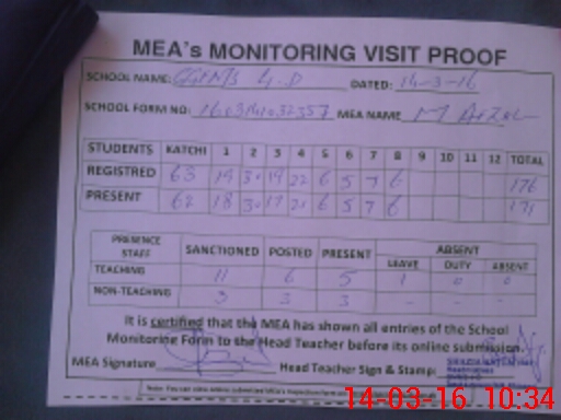 | Certified that this School was Inspected by the Undersigned MEA/DMO Today and the Information Stated Above is as Per Record. | |||||