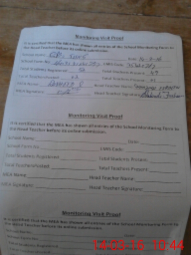 | Attendance Register | Head Teacher | MEA with School | Visit Proof |