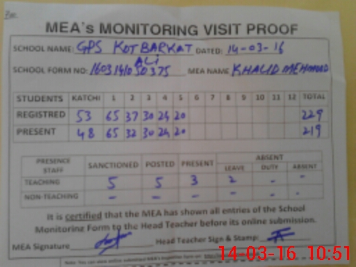 | Certified that this School was Inspected by the Undersigned MEA/DMO Today and the Information Stated Above is as Per Record. | |||||