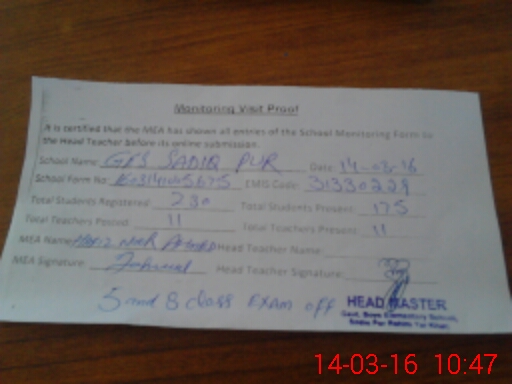 | EMIS Code: 31330229 | Name of School: GES SADIQ PUR | |||