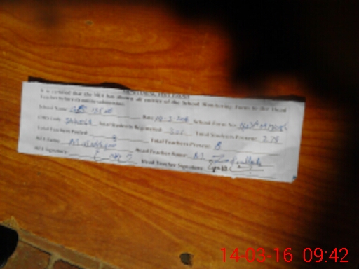 | Attendance Register | Head Teacher | MEA with School | Visit Proof |