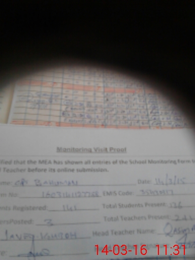 | Attendance Register | Head Teacher | MEA with School | Visit Proof |