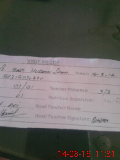 | Attendance Register | Head Teacher | MEA with School | Visit Proof |