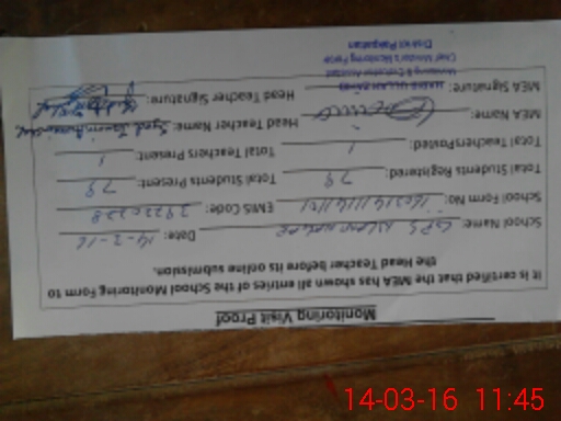 | Certified that this School was Inspected by the Undersigned MEA/DMO Today and the Information Stated Above is as Per Record. | |||||