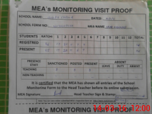 | Attendance Register | Head Teacher | MEA with School | Visit Proof |
