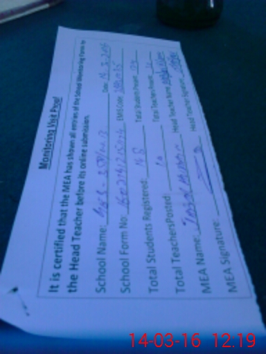 | Attendance Register | Head Teacher | MEA with School | Visit Proof |