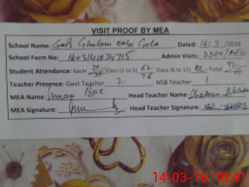 | EMIS Code: 32430182 | Name of School: GGPS GHULAM NABI GOLA | |||